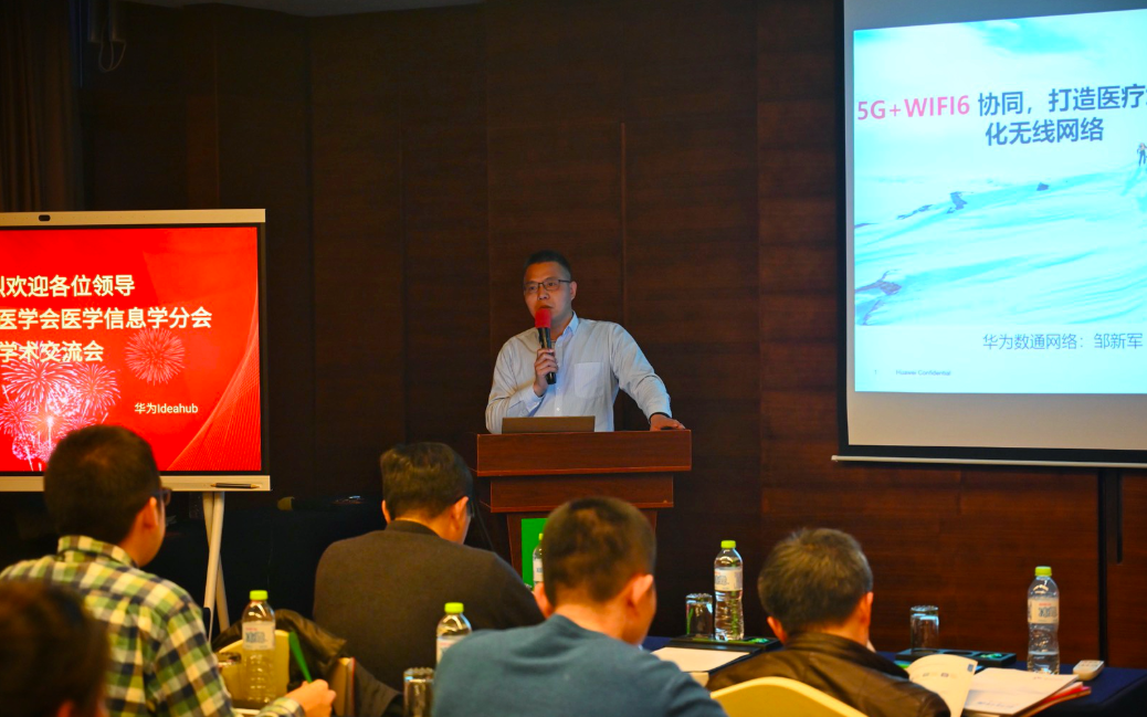 ↑华为数通网络产品规划部部长邹新军,分享《5G+Wifi6协同,打造医疗场景下数字化无线网络》